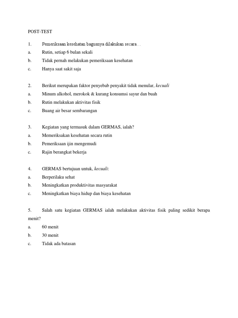 Contoh soal budaya hidup sehat. Check spelling or type a new query. Maybe you would like to learn more about one of these? We did not find results for:
